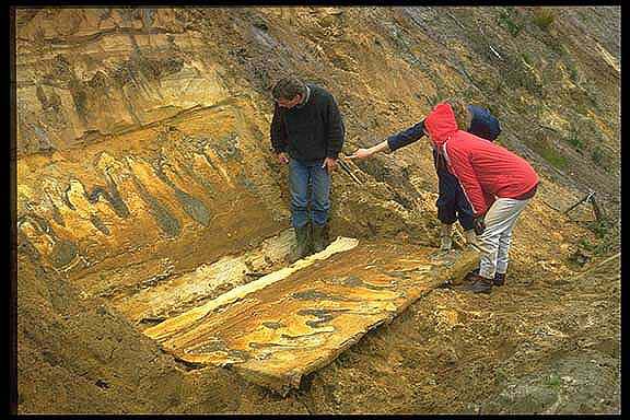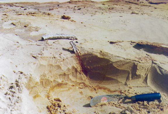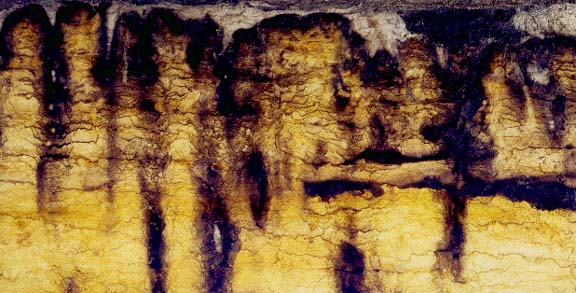 Entwässerungsstrukturen, Miozäne Sande mit humosen Einlagerungen.