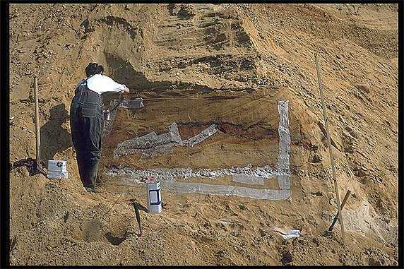 Herstellung von geologischen Lackprofilen an verschieden Orten